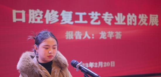 经贸与医技部口腔专业骨干教师龙芊荟为系部口腔修复工艺专业的师生做了题为《口腔修复工艺的发展》的学术讲座。讲座围绕口腔修复工艺的历史、口腔修复工艺的现状、口腔修复工艺的未来发展趋势、口腔修复工艺的职业发展四个方面进行讲座。龙老师用详实的数据和生动的案例为大家分析了当前口腔修复工艺的发展趋势。我国口腔修复工艺技术历史悠久,随着人口增长、居民可支配收入上升,人们对于牙齿的健康需求越来越大,当前我国口腔医疗事业存在很大的市场需求。龙老师为同学们分析了今后的职业发展道路,讲座现场,龙老师与学生进行互动,针对同学们所提出的问题给予了专业而详尽的回答。龙老师缜密的逻辑思维、丰富的专业知识,以及娓娓道来的讲解都给听众留下深刻印象。