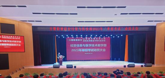2月13日晚,经贸与医技部举行高三单招誓师动员大会。全体师生参加。校领导杨俊等出席。