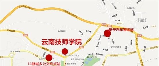 云南技师学院乘车线路1、地州乘坐到达昆明班车,到达昆明后各大汽车客运站口乘坐城乡公交到达安宁市区。