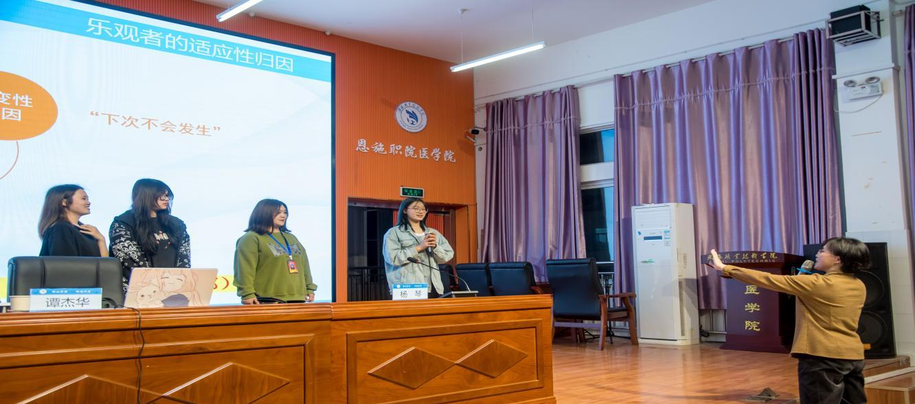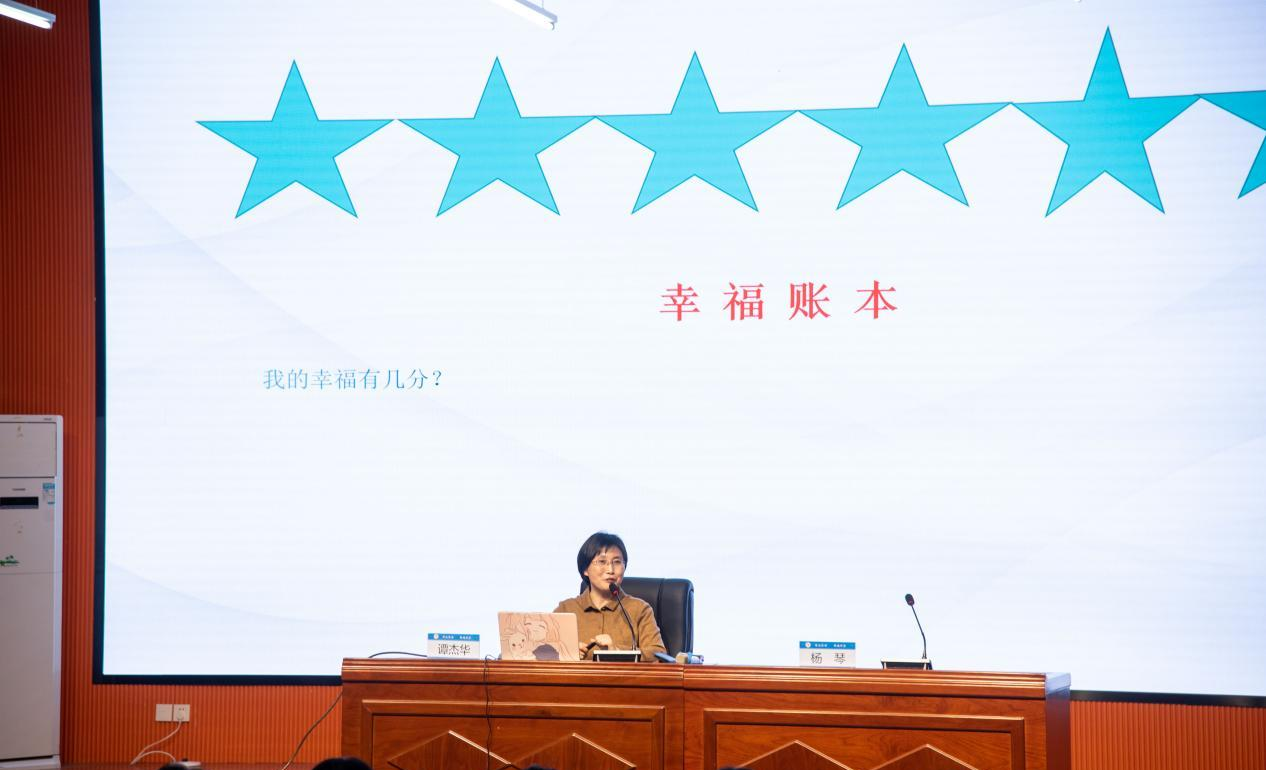 本次讲座由国家一级心理师、注册系统心理师、恩施州中小学心理健康教育指导专家委员会主任委员、湖北民族大学心理健康教育与中心创始人谭杰华主讲,恩施州卫校(恩施职院医学院)180多名学生到场聆听。谭杰华教授以“生活中的积极心理学”为主题开展宣讲,穿插了“给自己幸福打几分”的活动,帮助学生寻找打开幸福之门的钥匙,做一个幸福快乐的人。