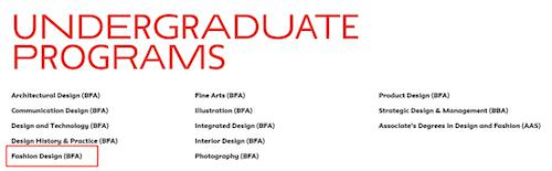 4年(全日制)的服装设计BFA是一个全方位的学位项目,学科的宗旨是让学生既沉浸在充满挑战与艺术氛围浓重的工作室课程、艺术史和批判理论课中,又提供融合更深层的人文科学探索平台。4年的课程结束后,这个项目以论文结尾,并使得毕业生具备足够的资格与实力继续深造研究生,也就是说这篇毕业论文的学术级别会是申请研究生的通关秘籍。