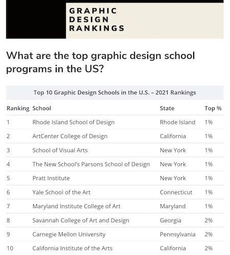 来源:AnimationCareerReview(ACR)2021平面设计全美院校榜单