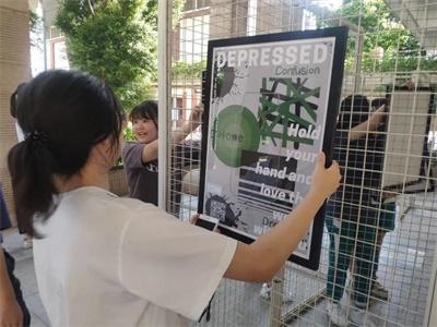 Presentation结束后,艺术外教带领着IFPADers举行了一场简单却别具意义的作品展揭幕仪式,学生亲手把作品悬挂在省实校园的德政楼外供大家参观。
