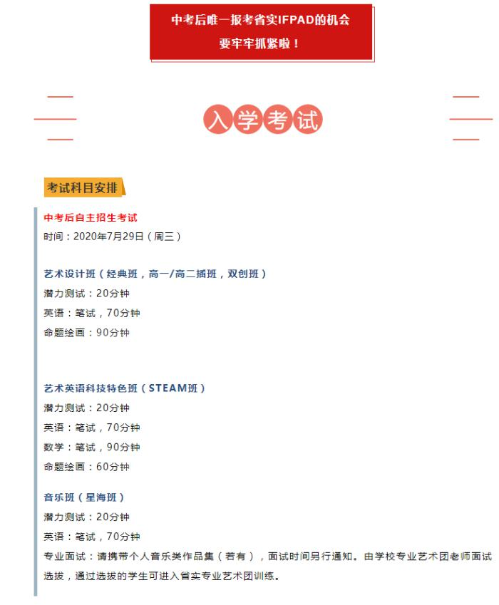 省实IFPAD国际艺术高中部7.29入学考试安排及报名
