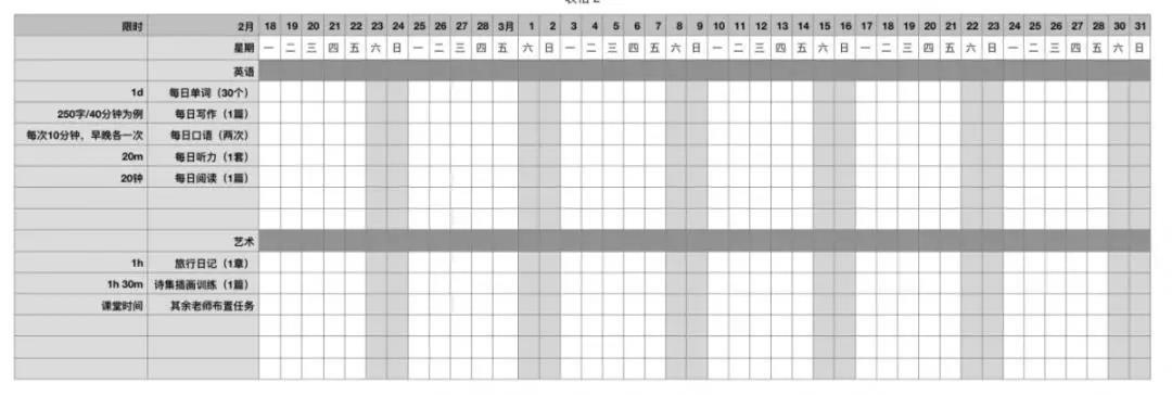 2.表格内可为打卡项或详细时间备注。