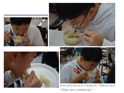 同学们亲手制作的饺子味道如何?看看他们吃饺子那副认真的小表情就知道了!
