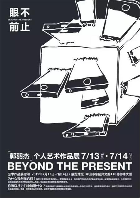郭羽杰同学就以上的问题进行了艺术的探索,并经过大半年时间的构思与创作,于2019年暑假在中山举办了首场个人艺术展——《不止眼前》。