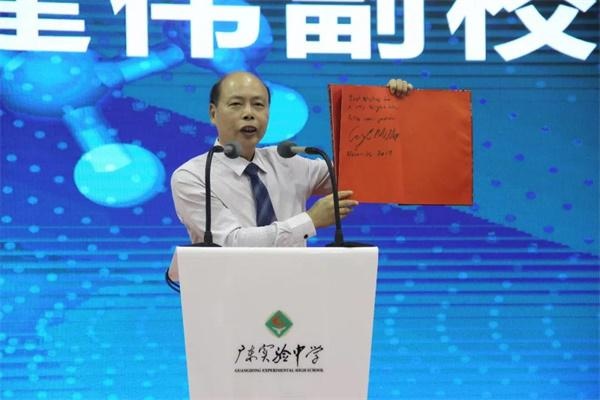 较后,黄建伟副校长代表学校致答谢词,感谢梅洛教授为省实学子学海引路,感谢梅洛教授同意受聘为广东实验中学教育顾问。黄副校长希望全体同学认真领会和践行梅洛教授传授的学习方法,同时学习梅洛教授不断探索钻研、勇攀科学高峰的学术精神。
