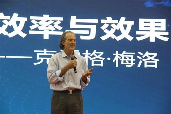 梅洛教授的报告主题为“学习的效率与效果”,简单介绍后,他走下了讲台,积极与同学们互动,全程面对面零距离英文交流。