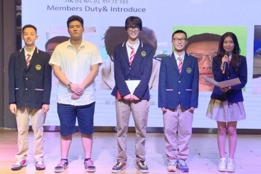 新一届学生政府各部门部长逐一带领部员上台发言。部长们为同学们介绍部门干事以及部门职能,并表达在新的学年中积极作为、配合国际部老师和学生政府工作的决心。