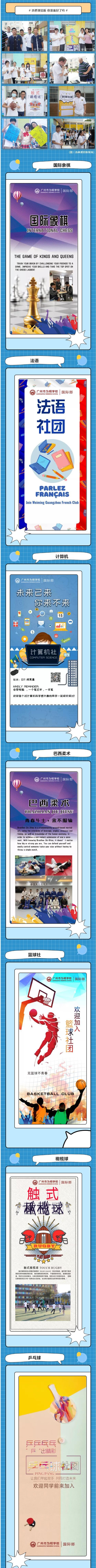 舞蹈、篮球、厨艺、法语、计算机、橄榄球、羽毛球、乒乓球、羽毛球、国际象棋、巴西柔术、衍纸、摄影、演讲与口才,多样化的选修课与你邂逅。