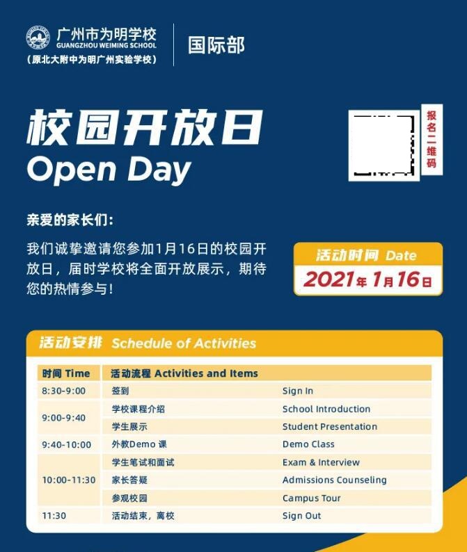 广州为明学校国际部2021年1月16日首场开放日,受到了非常多家长的关注,但疫情防控下,我们不得不严控十组家庭来访。