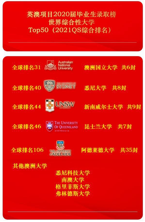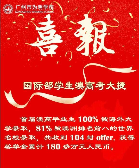 广州为明学校国际部高中英澳项目2020届学生是我校国际部首届澳高毕业生,他们用近三年的努力,斩获世界名校录取通知书。截止目前,已经收到来自澳洲国立大学、悉尼大学、新南威尔士大学、昆士兰大学、阿德莱德大学、悉尼科技大学、南澳大学、弗林德斯大学、格里菲斯大学等澳洲名校录取通知书。由于各州录取时间不同,维多利亚州的录取还在进行中,相信会收获更多惊喜!