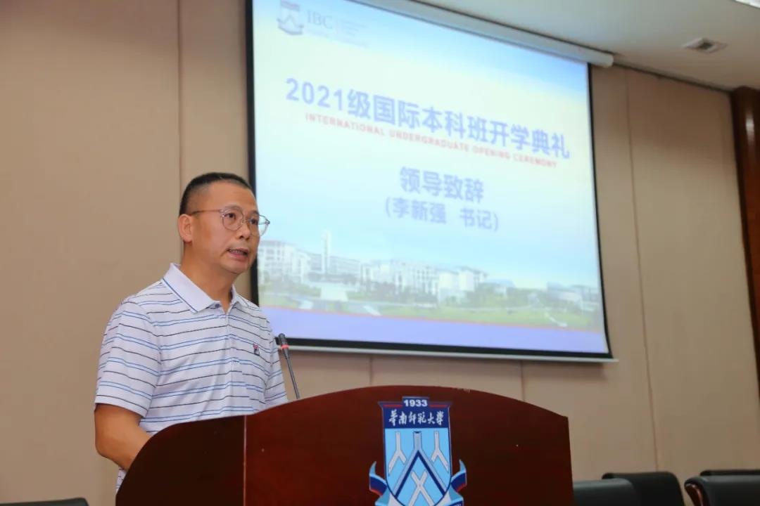 开学典礼在庄严的国歌中拉开序幕,随后华师国际商学院李新强书记代表学院向新生致辞。“青春当励志,立鸿鹄志,做奋斗者;把学习作为首要任务,惜时如金、孜孜不倦、心无旁骛地刻苦学习;求真学问,找到学习的原动力,明确学习重点的方向;强健体魄,身心健康。正确地对待一时的得失,处优而不养尊,受挫而不丧志,使顺境逆境都成为人生的财富。龙行天下,永远要做一个爱国者,记得自己是中国人。不负时代,不负韶华,不负党和人民的期待和希望,最后祝愿同学们学有所成,万事顺意!”新生致辞借用融合了习大大对青年的寄语,表达了华师大老师们对同学们的殷切期待。