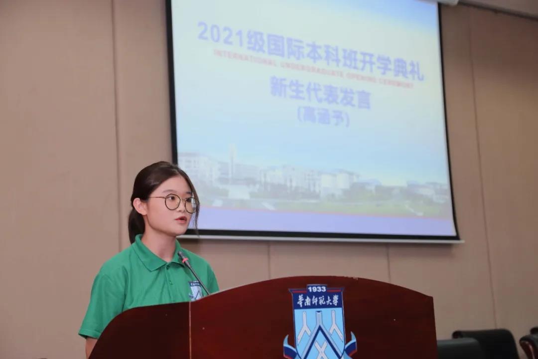 2021级新生代表高涵予来自语言8班,她坦言过去一周的素质拓展训练让她对家国情怀、感恩、责任和集体有了更深刻的理解,也感受到学院领导、老师们认真负责和学长学姐们的热情大方。她还和同学们分享了如何让大学生活更绚烂:希望同学们和她一样珍惜身边的每一个人,积极主动地抓住机遇,勇敢地打开自己,走出舒适圈,接触新事物。愿同学们都能靠着今日的磨砺,换取坦荡的未来。华师少年的眼中当盛下世间万物,华师少年的肩当撑起草长莺飞。
