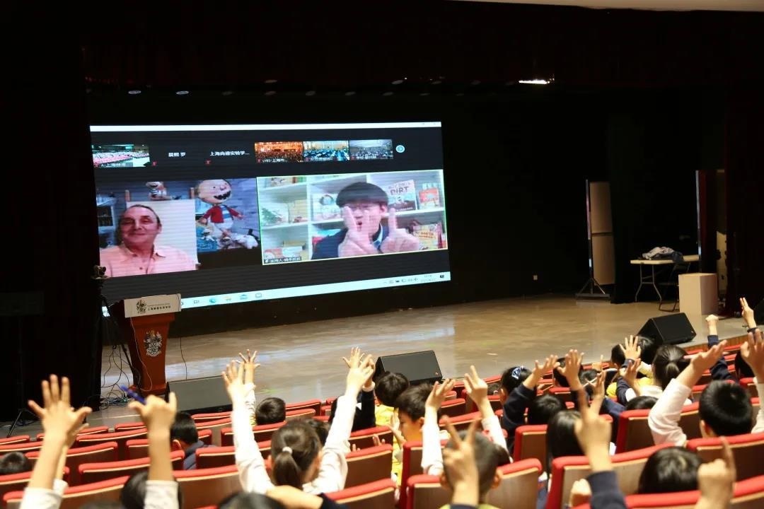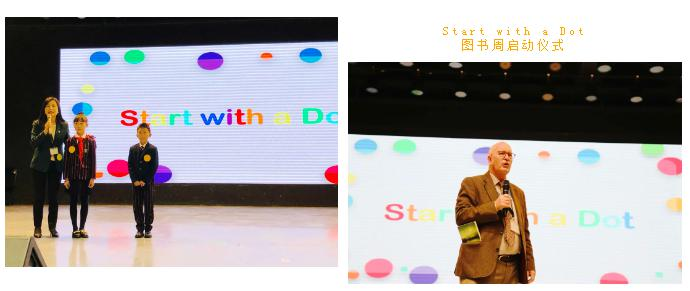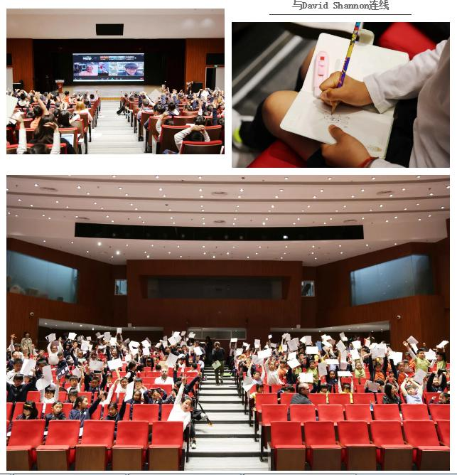 图书周中,二年级和三年级的同学尤其幸运,能够与远在美国的著名儿童作家大卫·香农(David Shannon)越洋连线,并和他一起画画。所有的图画均以一个“点”开头,孩子们将跟着这个“点”留下什么样的印迹呢?